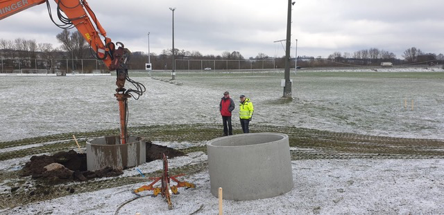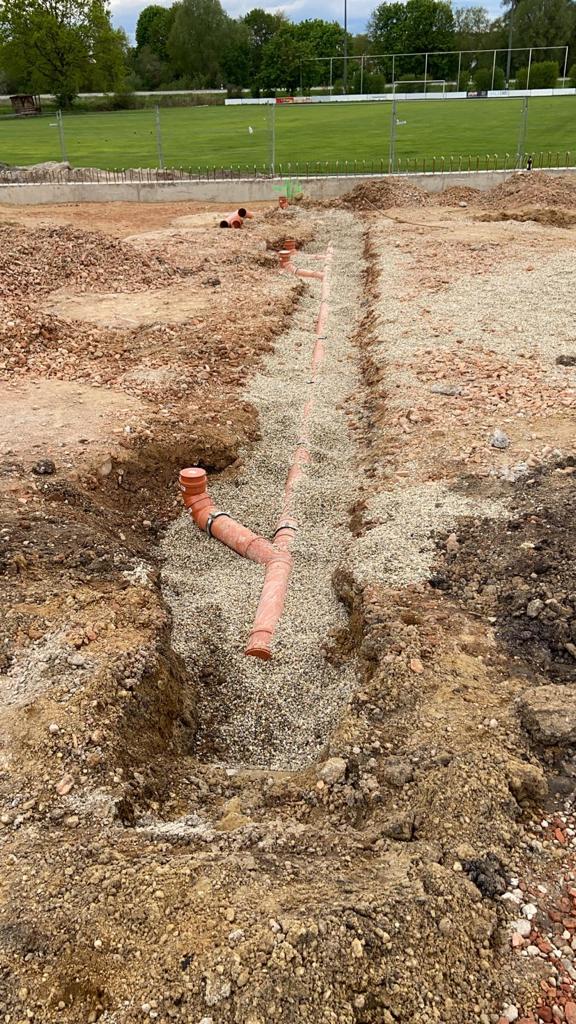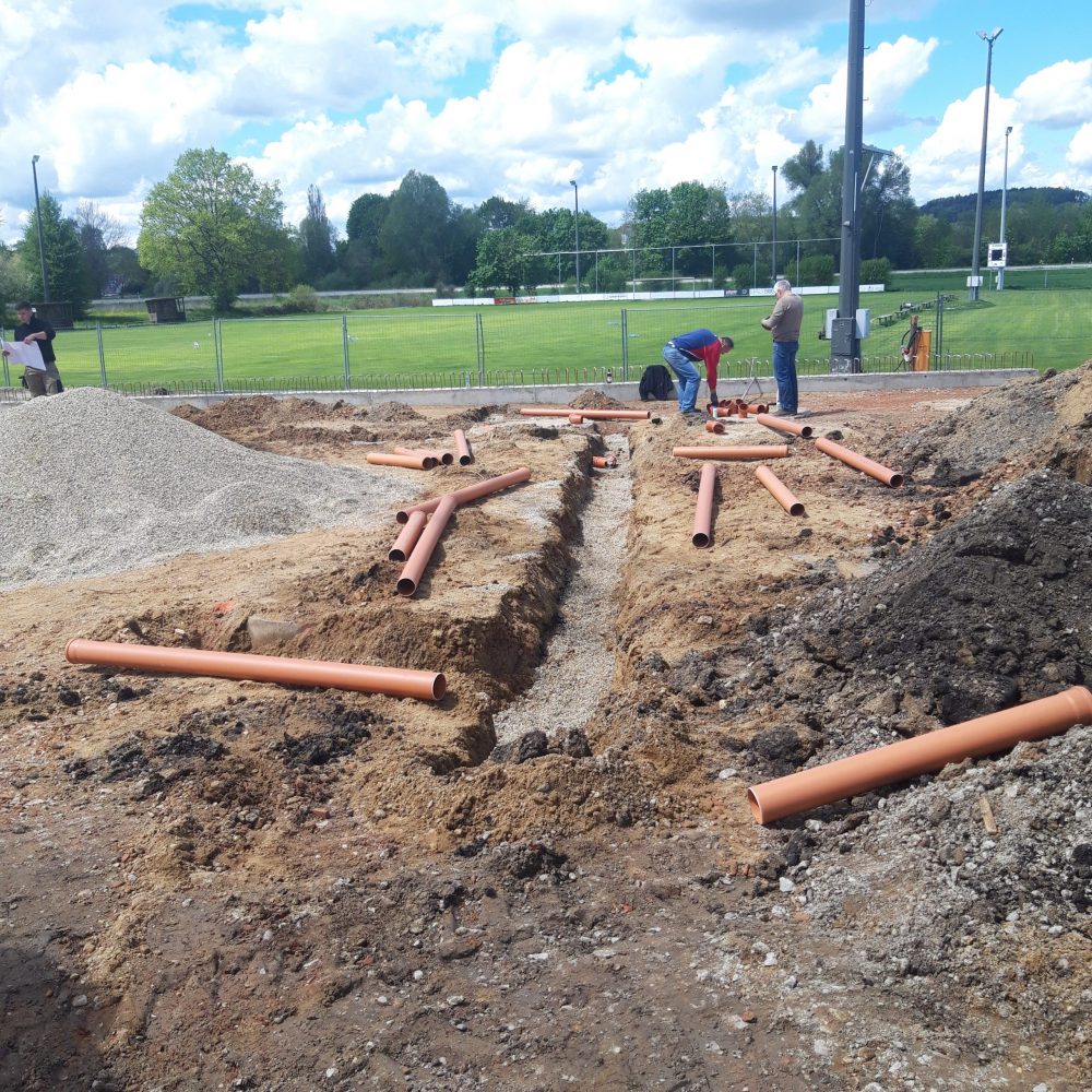 Nach Fertigstellung der Bodenringgründung mit der Versenkung von 103 Schachtringen befüllt mit ca. 160qm’3 Beton ist die Baustelle jetzt bereit für die Erstellung der Bodenplatte durch die Fa.Eisenmann Bau / Geroldshausen. Bisher wurden alle Arbeiten von Helfern des BCU mit schwerem Gerät und Handarbeit verrichtet. Alle Beteiligten kommen aus dem Fussballernetzwerk, angefangen beim Vermesser (Mitglied des ST Scheyern) dem Baggerfahrer (Mitglied des BCU/Fahlenbach) Spezialist für Baggersoftware (SpVgg Langenbruck) und wichtige Helfer mit Maschinenpark und Bausachverstand aus den Reihen der Uttenhofener Feuerwehr. Auch die Aktiven aus dem BCU-Fussballerlager waren fleißig am Werk. Die Vorstandschaft des BCU hofft auf weitere aktive Mithilfe, die zum Gelingen des Bauprojektes beiträgt. Sobald es die Pandemielage erlaubt, wird der Sportbetrieb wieder anlaufen und auch Vereinssitzungen stattfinden.