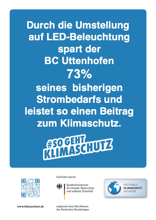 die einen Beitrag zur Senkung der Treibhausgasimmissionen leisten. Der BC Uttenhofen reduziert durch die Umstellung der Flutlichtanlage auf LED-Technik seinen Stromverbrauch um 73%.